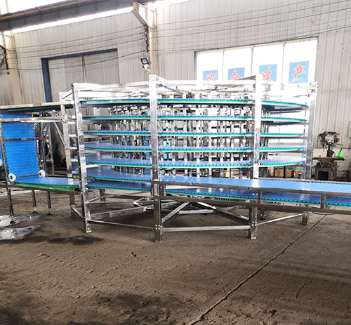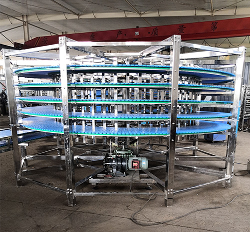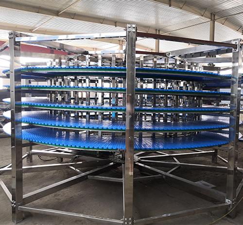 宁津县鑫昌达机械厂主营食品回盘线,面包螺旋冷却塔,输送机设备,面食品、菜卷、春卷、蔬菜、水果、肉食、油炸品、小包装食品的输送,分单塔和双塔多层不锈钢机身,占地面积小,输送量大,采用食品级螺旋网带易清洗和维护。要形成三到6个月之间对螺旋冷却塔进行定期检查,若是内部出现问题,应当由专业技术人员对其维修。